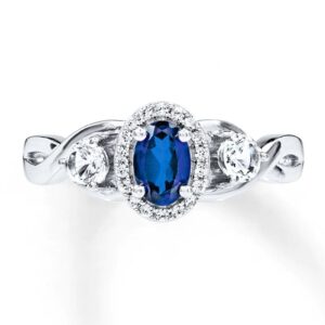 Blue Sapphire (1/4 ct. t.w.), White Sapphire (1/8 ct. t.w.), & Diamond Accent Heart Ring in Sterling Silver